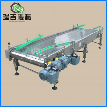 不銹鋼鏈板輸送機(jī)同樣在常規(guī)情況下底部鋪設(shè)高分子塑料墊條,同樣可以做成單列或多列形式,在高溫情況下,底部可以鋪設(shè)銅片或者耐磨性金屬,滿足高溫環(huán)境溫度下的輸送要 求;適用于玻璃瓶以及易拉罐的輸送。