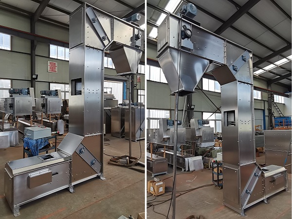 斗式垂直提升機是我司設(shè)計制作的斗式提升機系列產(chǎn)品中的一種,根據(jù)進、出料口位置的不同而型似字母Z字得名;可以在任意位置滿足多點卸料的要求,其中我們又有老款和新款之分;老款設(shè)備主要應(yīng)用于提升高度在5米以下,物料種類僅限于顆粒及小塊狀物料,由于受到機架強度及鏈條抗拉強度的限制,所以高度不宜過高;老款設(shè)備的提升量不能超過6立方/小時;新款提升機既可以提升顆粒及小塊狀物料,也可以提升含粉量低于25%的混合型物料,提升高度可以達到20米,提升量20立方/小時;新款Z型斗式提升機我們完全引用了先進技術(shù),料斗采用了較老款料斗更加柔性化的設(shè)計,并在原有先進技術(shù)的基礎(chǔ)上,增加了全程超高分子導(dǎo)軌及鏈條摩擦塊,在提升高度較高時配備了逆止裝置及電子檢測裝置、斷鏈保護裝置、鏈條自動張緊裝置,使得設(shè)備安全可靠;提升鏈條采用了精密輥子鏈,在料斗的尺寸上延續(xù)了我們的PP塑料料斗的特點,料斗容積有3L和8L可選;并結(jié)合防腐蝕、耐高溫等要求,可非標(biāo)定制碳鋼、不銹鋼等金屬料斗,使得我們的提升機在化工、塑料、糧食、寵物食品、膨化食品、休閑食品、再生資源、五金、化工等行業(yè)得到了廣泛的應(yīng)用