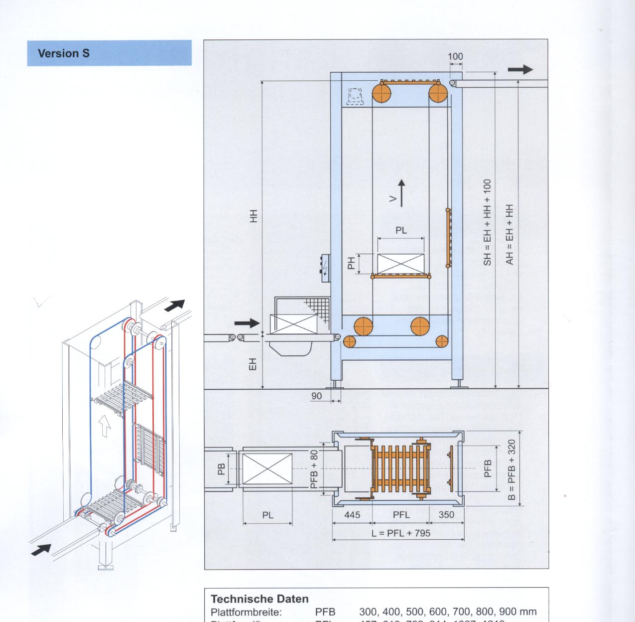 10.往復(fù)式提升機形式多樣(固定式或移動式),布置靈活,物料可以從各個方向上進出升降機,便于生產(chǎn)設(shè)備布局;