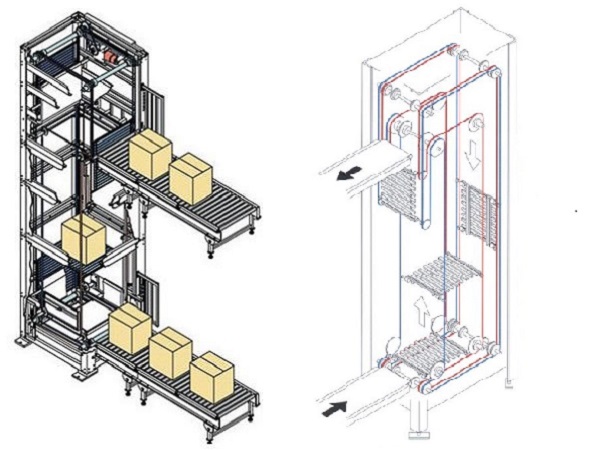 托盤連續(xù)式提升機可用于編織袋、牛皮紙袋、PE塑料袋等包裝袋以及紙箱、周轉(zhuǎn)筐、鐵桶、塑料桶等箱包類產(chǎn)品的連續(xù)式垂直提升,由進出口輸送線和提升部分組成,整套設(shè)備由PLC程序控制,具有故障自動停機報警功能,材質(zhì)有碳鋼噴漆、不銹鋼可選,提升高度可達(dá)20米,提升速度可達(dá)15件/分鐘,按照進出位置的不同可分為Z型和C型兩種,機架外部采用有機玻璃板或防護網(wǎng)封閉,美觀的同時確保了使用者的安全;
