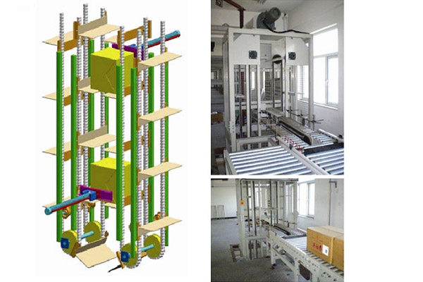 紙箱垂直提升機(jī)又稱為:垂直輸箱機(jī),連續(xù)式托盤提升機(jī),托盤式垂直提升機(jī),由提升機(jī)框架、傳動軸、鏈輪、傳動鏈條及組合式托盤、承載鏈條等組成,全程采用該分子耐磨導(dǎo)軌導(dǎo)向,主要應(yīng)用于紙箱、塑料周轉(zhuǎn)箱、油桶、棧板等規(guī)格箱式元件的垂直提升輸送;