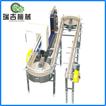 廣泛用于食品、罐頭、藥品、飲料、化妝品和洗滌用品、紙制品、調(diào)味品、乳業(yè)及煙草等的自動輸送、分配、和后道包裝的連線輸送。