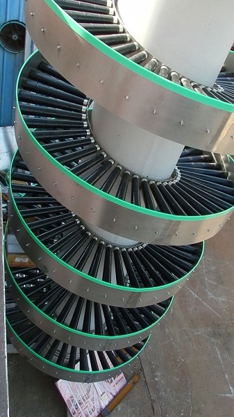 螺旋滾筒輸送機(jī)又稱為螺旋降箱機(jī),通過將機(jī)架制作成螺旋狀,一般為無動力結(jié)構(gòu),可用于輸送量較大的紙箱、袋裝產(chǎn)品的連續(xù)式下降輸送;
