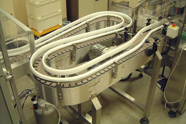 鏈板式轉(zhuǎn)彎輸送機(jī)是鏈板輸送機(jī)的一種,轉(zhuǎn)彎角度任意角度,甚至于直接做成任意的S型轉(zhuǎn)彎;機(jī)架有碳鋼噴塑、不銹鋼、鋁型材等,鏈板寬度有82.5、114.3、152.4、190.5、304.8,且鏈板材質(zhì)有POM塑鋼、不銹鋼、碳鋼可選,廣泛用于食品、罐頭、藥品、飲料、化妝品和洗滌用品、紙制品、調(diào)味品、乳業(yè)及煙草等的自動(dòng)輸送、分配、和后道包裝的連線輸送。